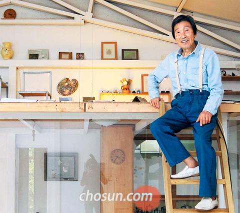 - ▲ 백영수 화백은 의정부 자택 거실 천장 아래 판자를 대고 다락을 만들었다. 높은 곳에 올라가 아래를 관찰하는 것을 좋아하기 때문. 아흔 살 고령에도 다락에 올라서면 소년처럼 힘이 넘친다. /의정부=이태경 기자 ecaro@chosun.com