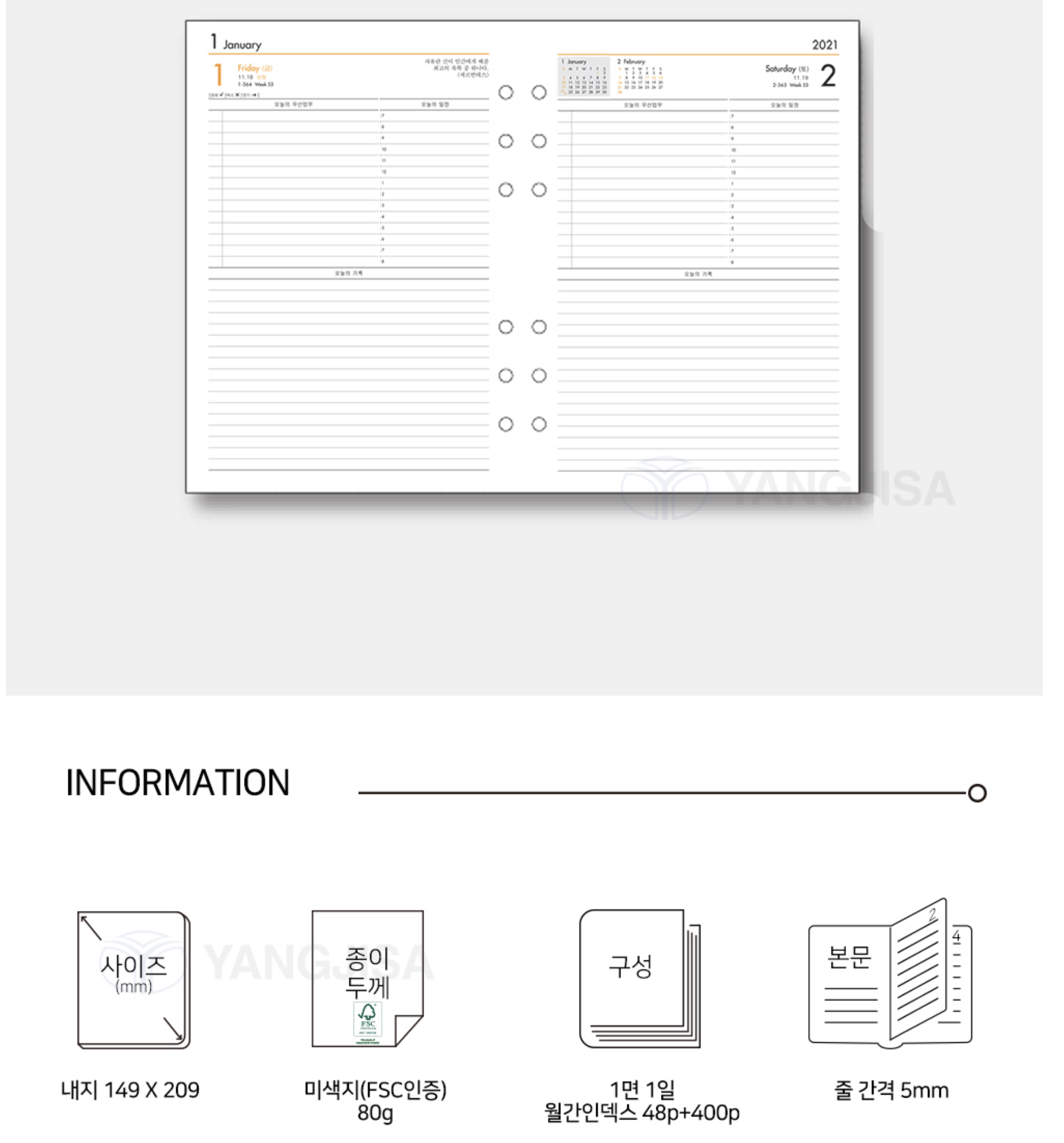 - 양지사 A5 플래너 리필 1일1면 (온라인에서 7000원 + S/H 2500원)