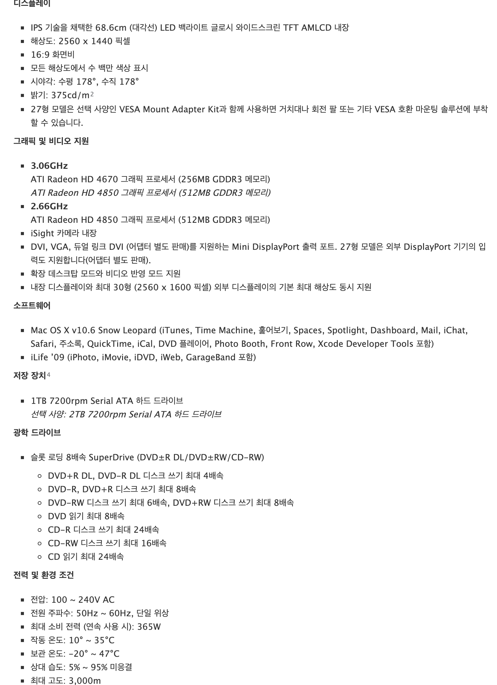 "2009년 후반~2010년 중반의 27인치 모델", "2011년 중반~2014년 중반 아이맥 전체 모델"만 가능하다.