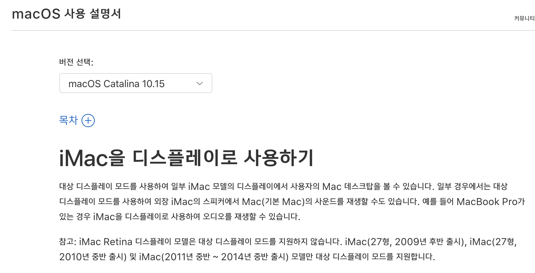 먼저 타겟 디스플레이 지원 아이맥을 확인할 것. 타겟 모니터로 사용이 가능한 모델은 제한되어 있다.