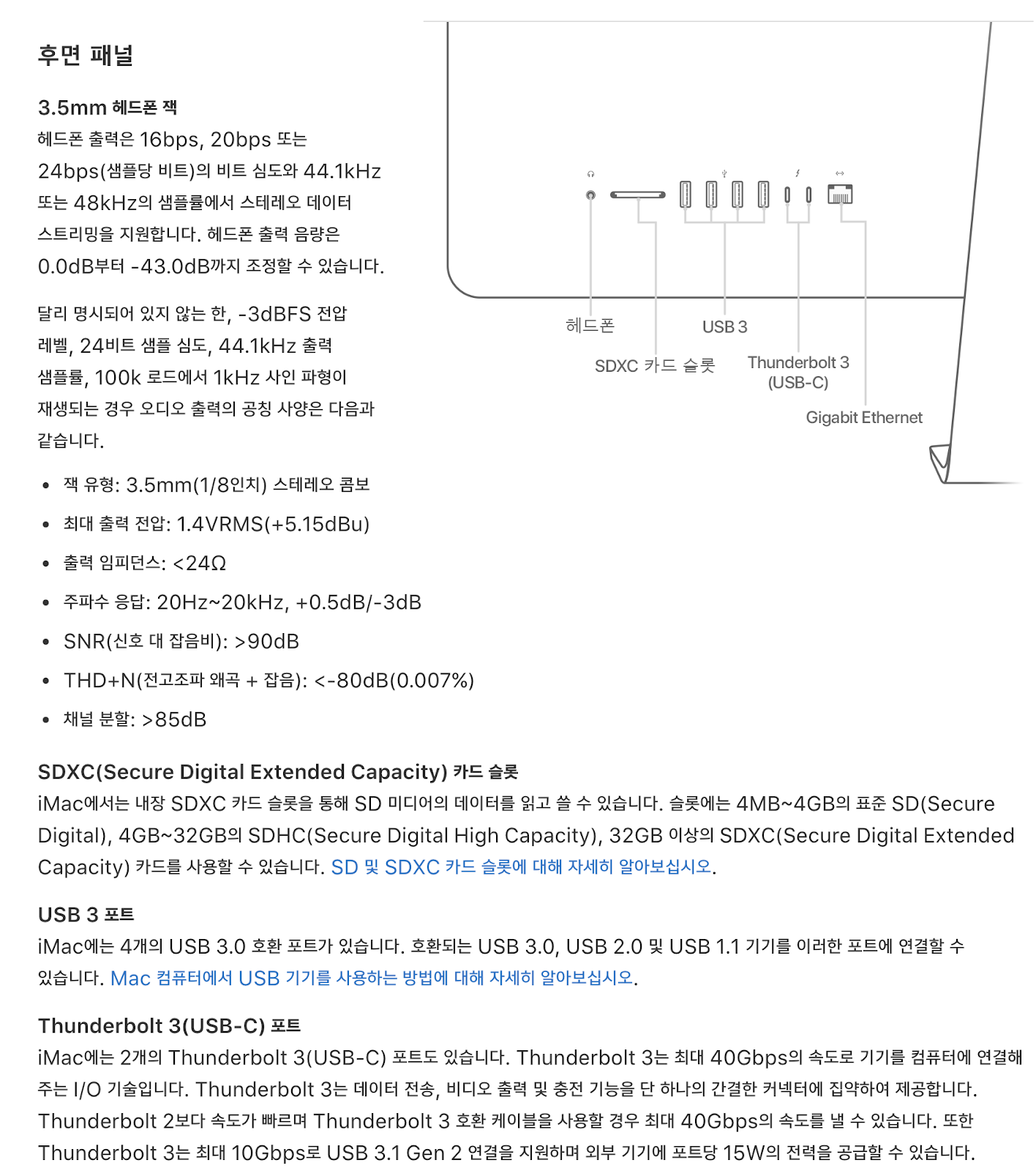 2009 아이맥 27" 제품 규격 (출처. https://support.apple.com/kb/SP696?viewlocale=ko_KR&locale=en_US )