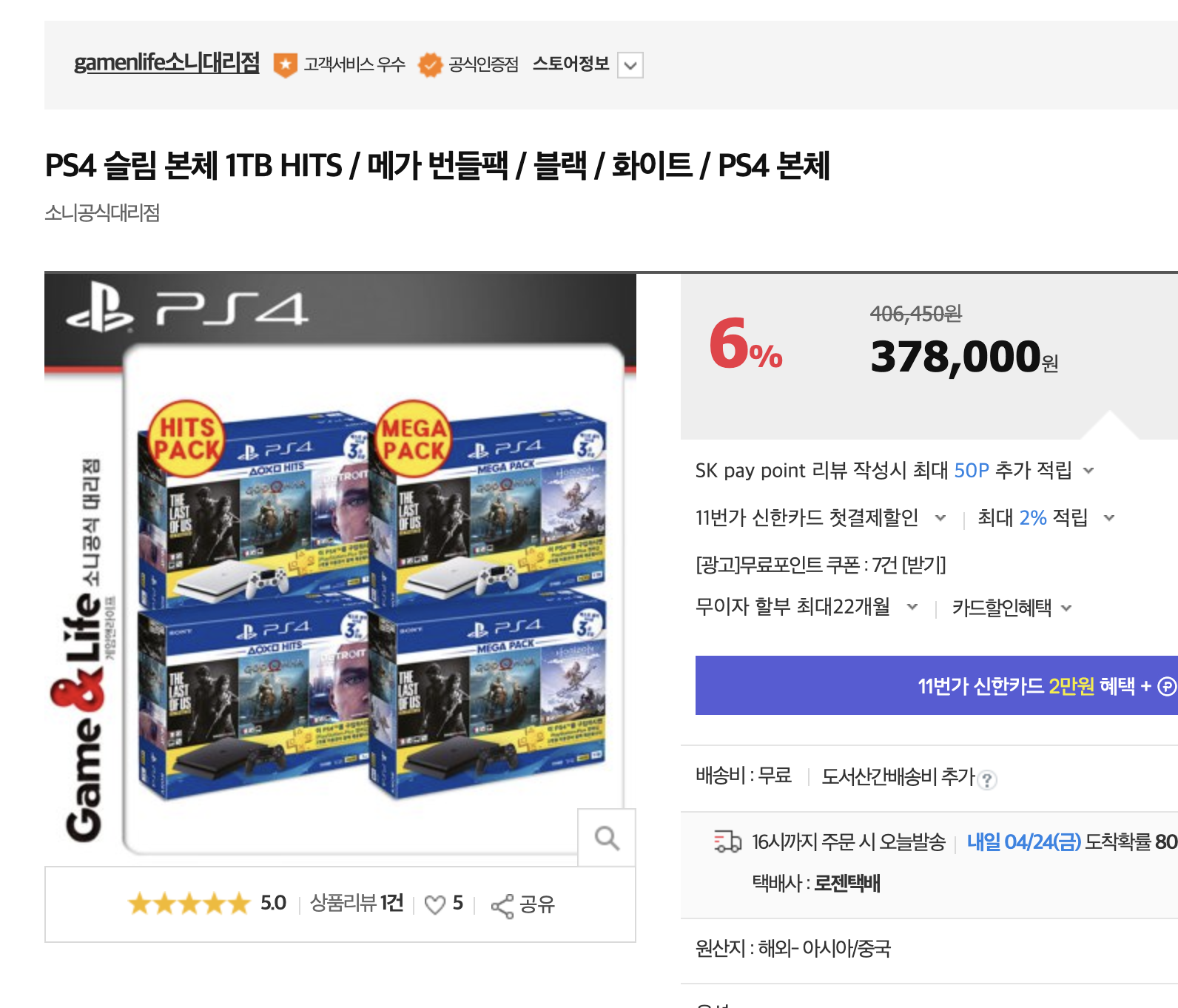 결국 플스4 슬림블랙 1TB (2019년 하반기 생산) 메가팩(게임 3개 함께 끼워주는 번들제품)을 구입하였다.